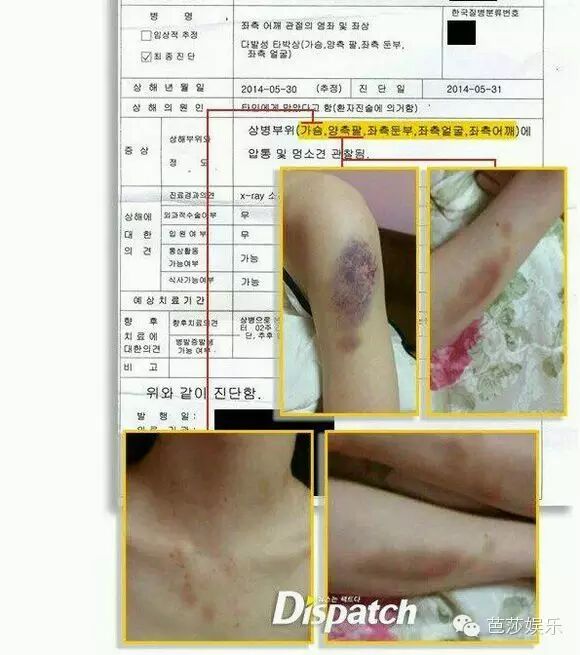 去年8月,金贤重突然被爆出了家暴女友崔小姐事件。金贤重方立马回应说他没施暴啊,这都是崔小姐和金贤重吵闹时不小心造成的!罢特,刚否认完家暴,崔小姐到医院验伤的报告和照片就被曝光了,照片里明显可见她的肩膊、手臂及双腿都伤势严重!
