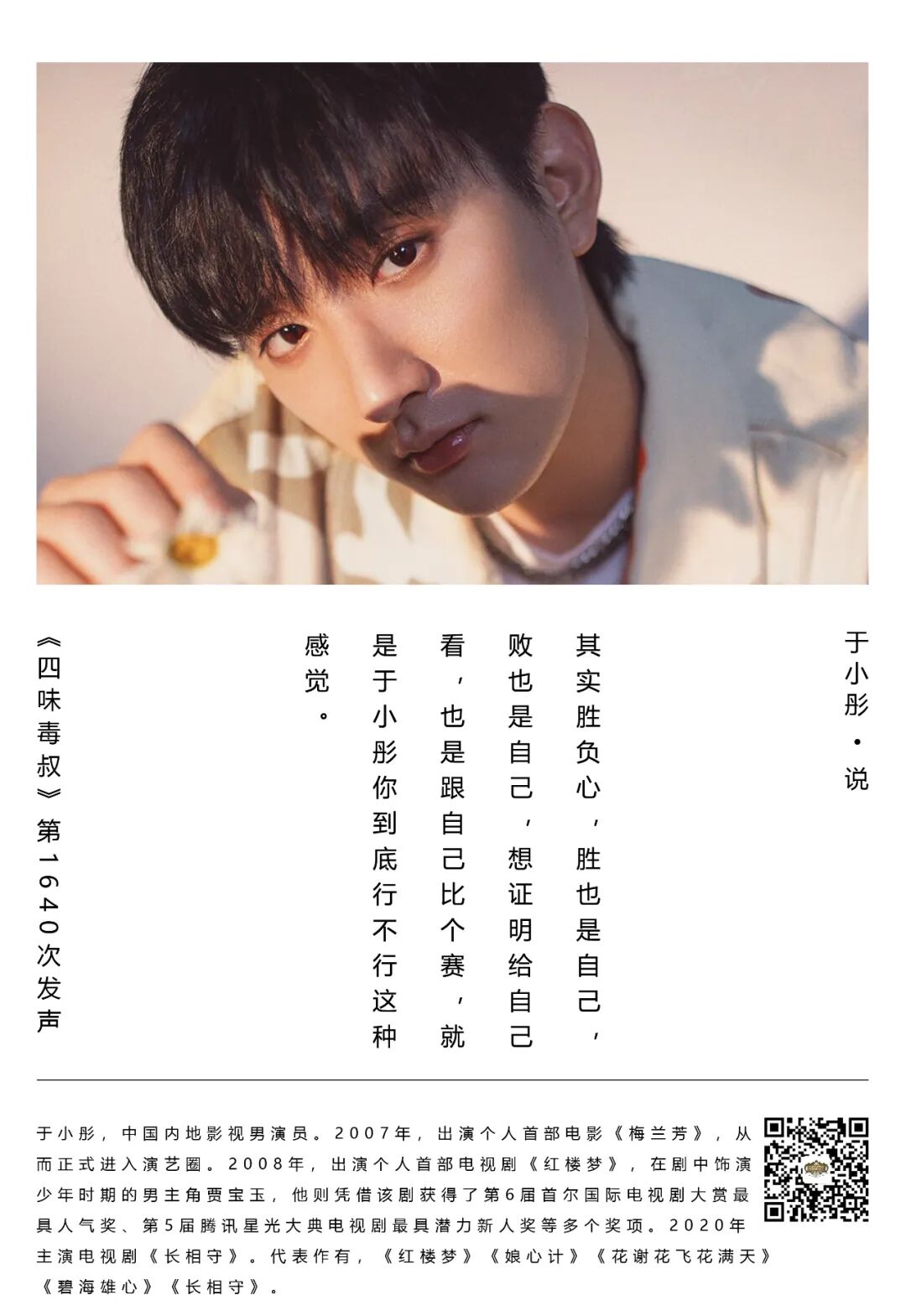 谭飞:欢迎于小彤来到《四味毒叔》。小彤是特别乖的一个演员,这个“乖”不是贬义词,是褒义词。因为我原来可能看到你的一些新闻,我觉得小彤还是挺调皮的,但是其实我在《演员请就位》后台见到你,我觉得你是特别有礼貌的一个大男孩。