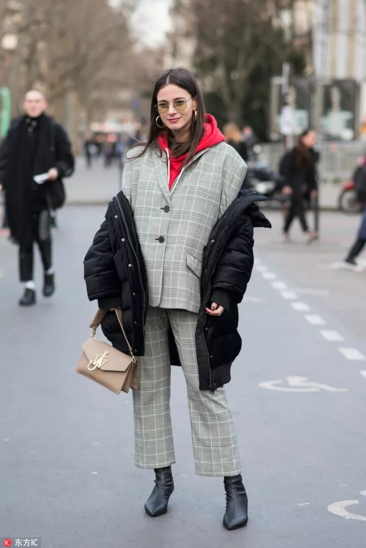何穗、戚薇日常街拍也都是这种模式套路,只要不出现过于冲撞的色调,这两件单品混搭在一起基本不会出现什么太大的问题。