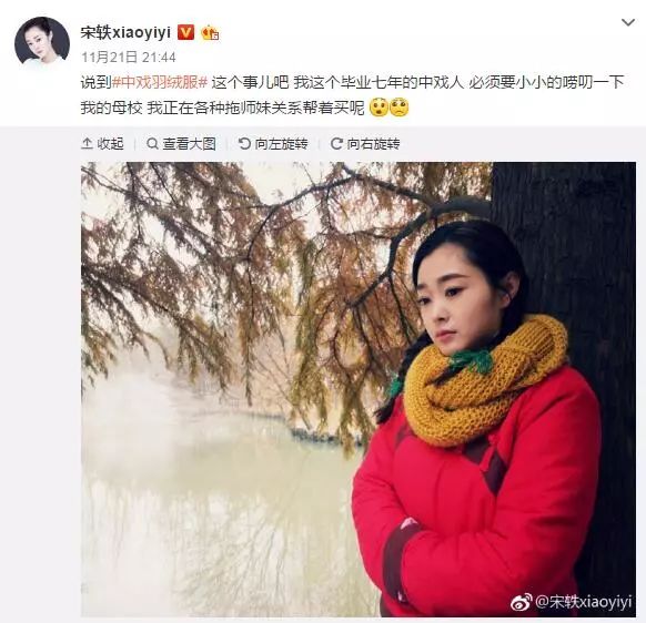 一些毕业多年的师姐也都赶着时髦风潮要托关系买呢,宋轶就在微博上“吐槽”过买件母校的校服,还要各种求人。