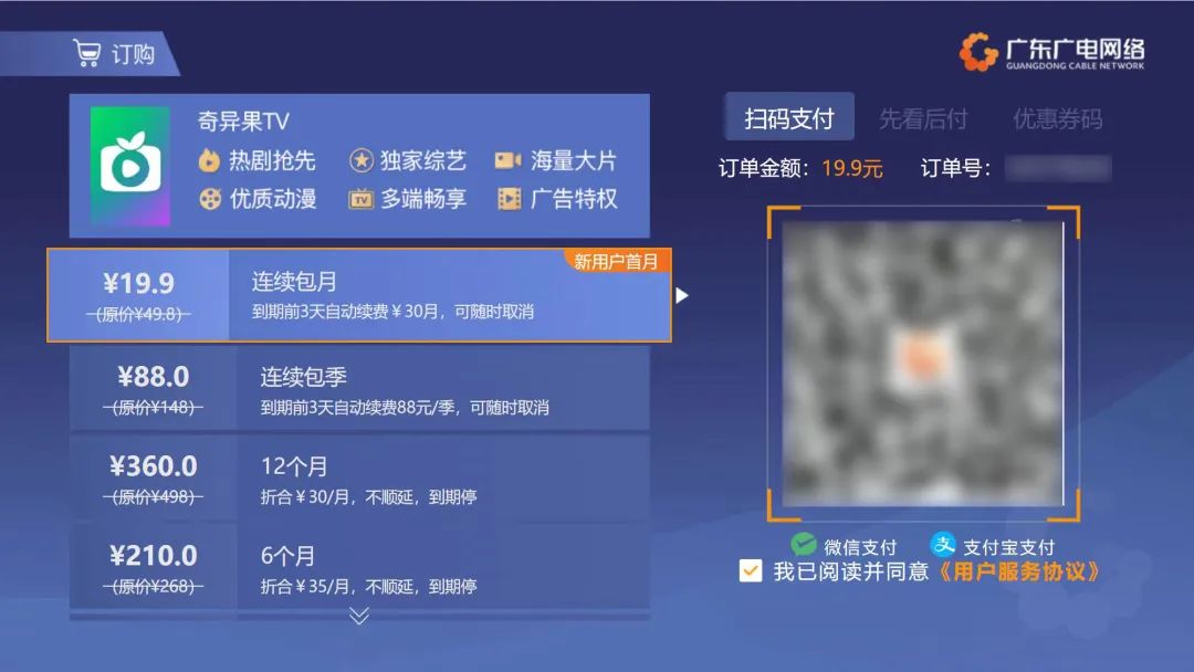 新用户连续包月首月仅需19.9元