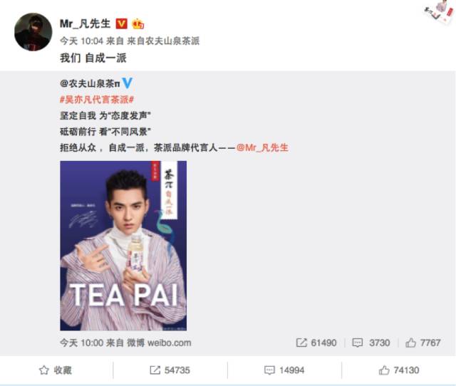 吴亦凡代言茶π,一起“自成一派”!