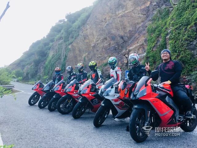 当然山路不比赛道、正常公路。和你一起出行的队友很重要,周日我们浩浩荡荡这么多人,@DK康康 @格调 @罂粟花@熊焱国际&大鹏……组织大家注意安全,根据自己速度,不压黄线、不弯道超车、不跟队友太紧、注意砂石……等等,我们都不是非主流少年,并不是去玩曼岛TT。我们的跑山是去看风景、会友人、吃美食、聊摩托……对于我这样的菜鸟小白,摩友们更是给我很多鼓励和帮助。