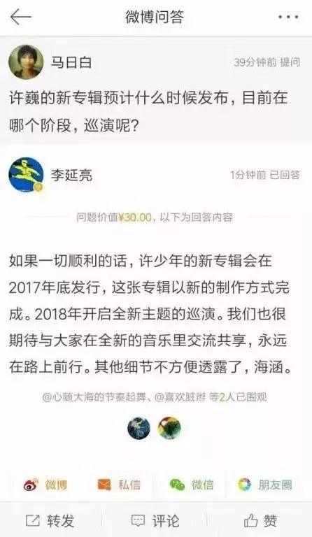 巍迷@马日白 在微博向李延亮提问,