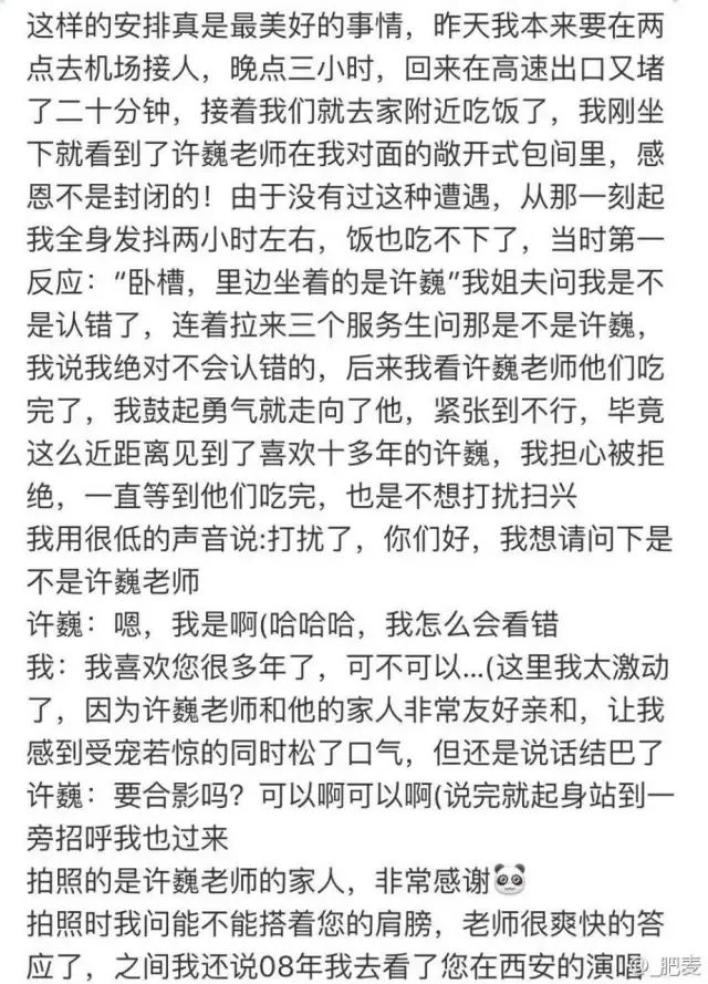 巍迷 @_肥麦 在许巍吧微博评论里分享了昨天在西安和许巍合影的开心事随后发来了当时的文字描述,随口一问,没想到许老师却意外透露了关于新专辑的情况......