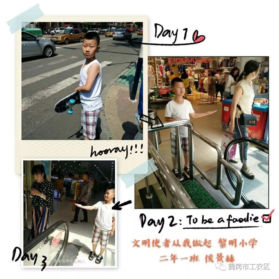 开展“文明交通从我做起、讲礼貌尊敬他人、文明出游遵守规则、爱护公物从我做起”的活动,活动照片与7月9日——7月16日在校内展示。