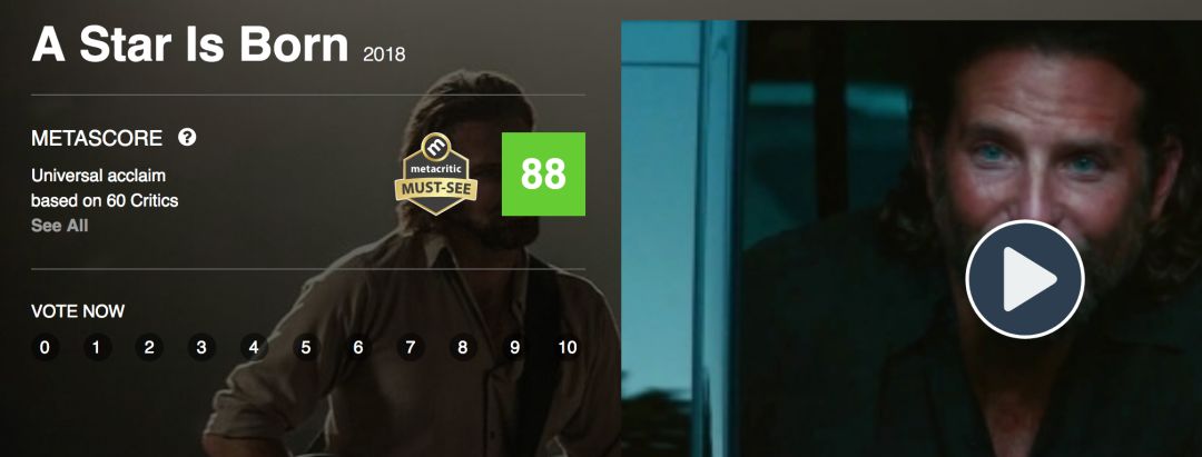 目前《一个明星的诞生》在西方国家口碑可以用炸裂来形容,看过都说好,有因为音乐赞扬的,有因为故事感动的,更多的是因为LADY GAGA的出演而爆打满分的。