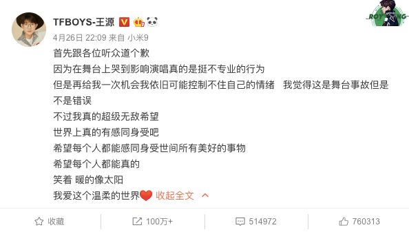 事后他在微博上发文,为自己不专业的行为道歉:「我觉得这是舞台事故,但是不是错误。」