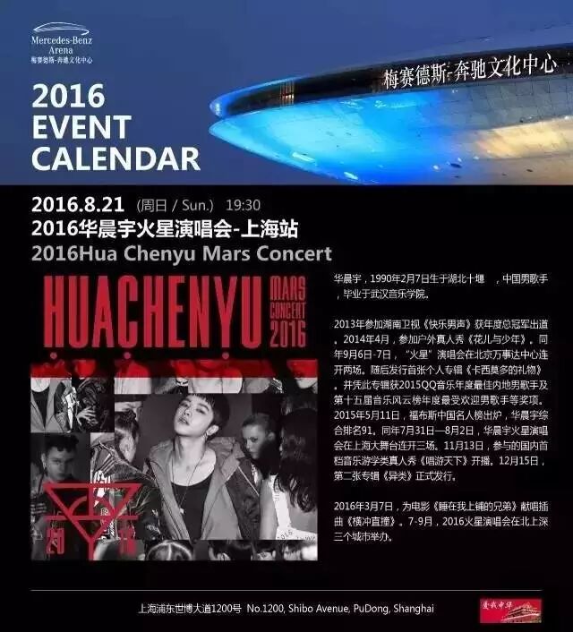 如果你不了解或者不够了解他,请给他一首歌的时间。听他声嘶力竭的呐喊,浅吟低唱的诉说。来一场与灵魂对话、与时间交融、与音乐碰撞的火星之旅。“火星”上海,华晨宇带你一同去感受血脉喷张下炙热的灵魂,躁动不安中跃动的音乐。