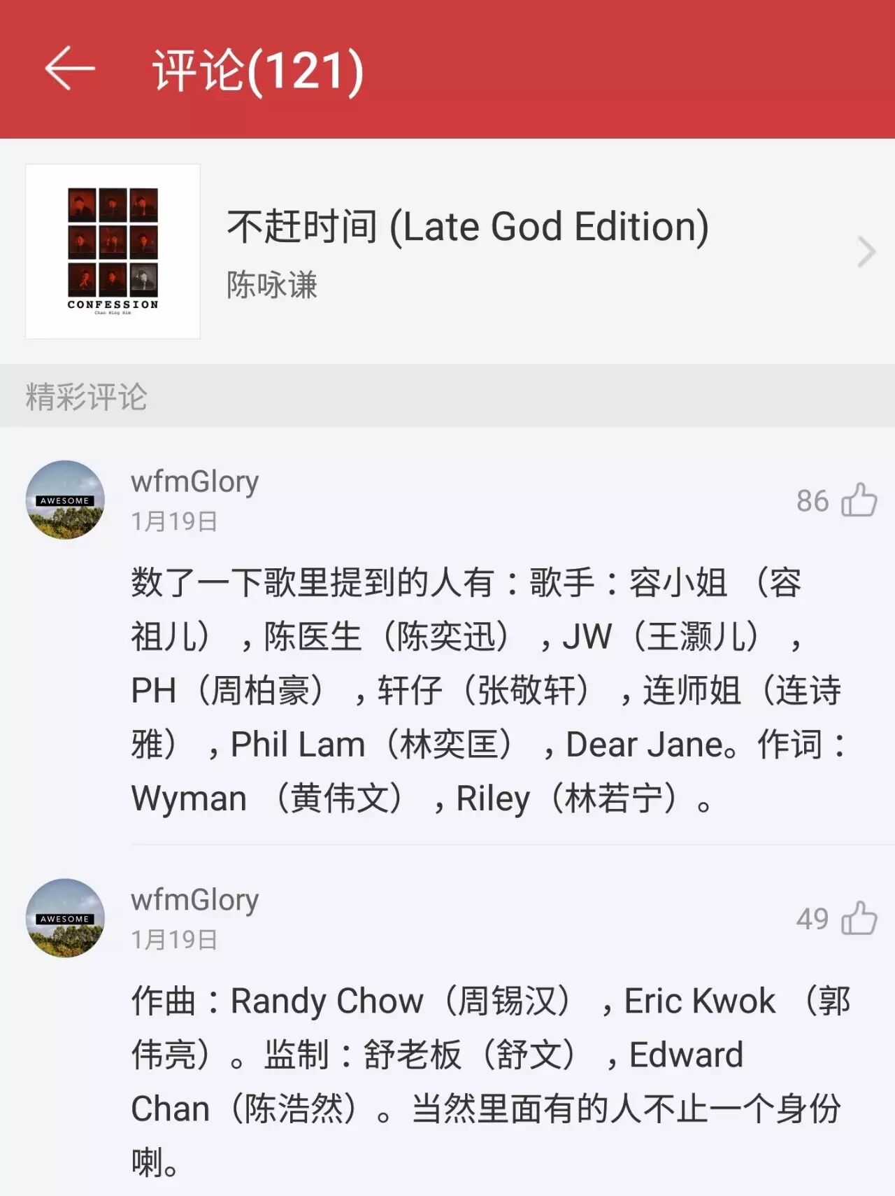 这次肥谦自己写自己唱,碌爆人情卡把最常合作的歌手和制作人写进歌里,还邀来Wyman一起出演MV。里面提到的音乐人有: