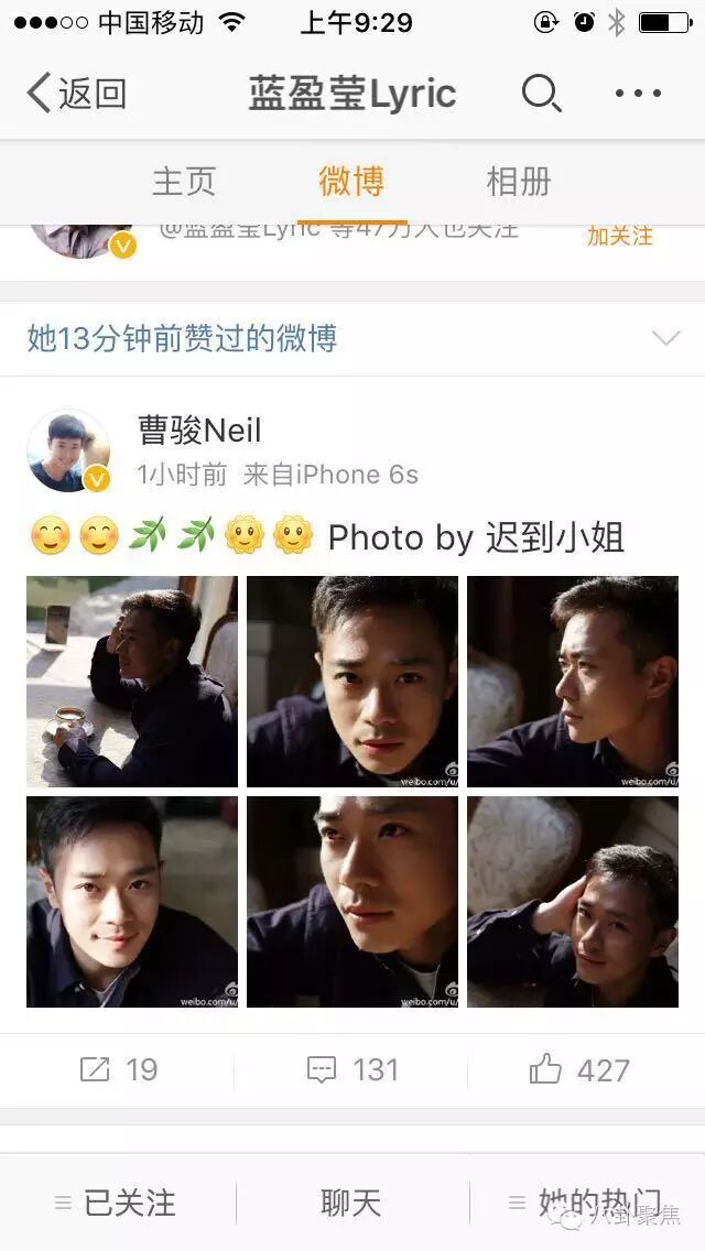 包括24日上午曹骏的迟到小姐微博,蓝盈莹也点赞了。