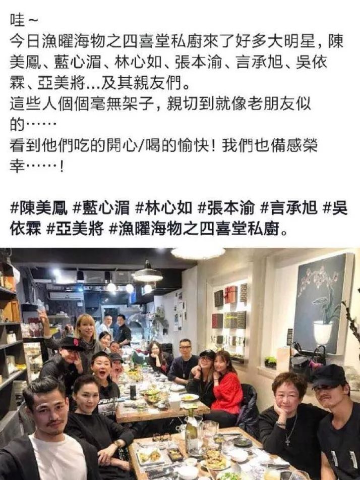 另外一个,则是这一位,就是当初将言承旭介绍给林心如的陈美凤。现在言承旭与林心如都找到了各自的幸福,陈美凤也放下心头大石,继续邀约两位好友出来聚餐,反正在这个圈子做不成情侣也可以做朋友,对吧?