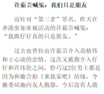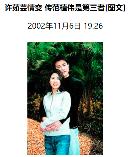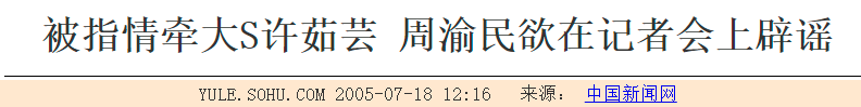 后来我们知道了,许茹芸是误传,真正和周渝民在一起的是大S,但好像许茹芸之前也被传过是王心凌和范植伟之间的第三者。