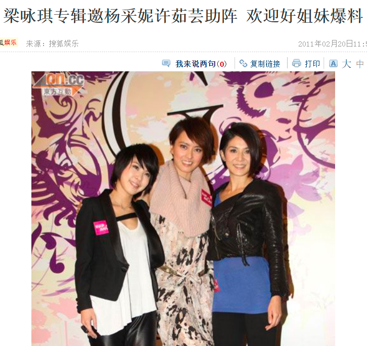 梁咏琪的新专辑发布会会邀许茹芸、杨采妮助阵,而李心洁主演香港世博献礼舞台剧,其余三人也会专程飞去上海捧场。