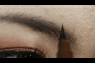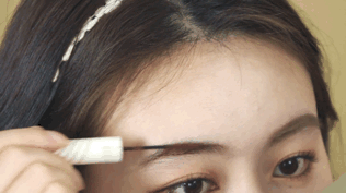 眉头的部分,手稳的小伙伴可以用液体眉笔轻轻画出眉头的毛发感,或者直接用睫毛膏向上刷出毛流。