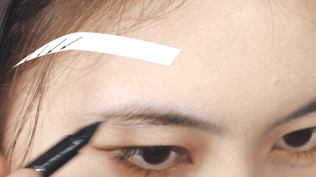 用液体眉笔顺着眉毛本身的毛发走势,从中部开始,一根一根向后画,重点在眉毛中心位置,不要画出明显的边缘线。