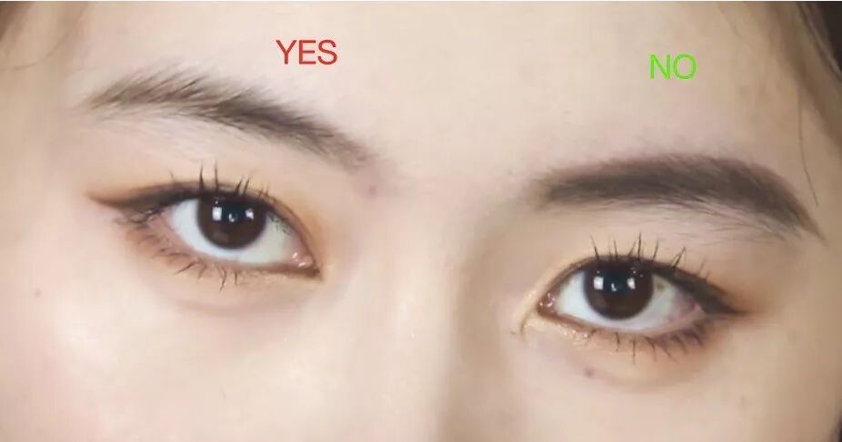 在定位眉毛位置的时候,眉头的位置不要超过内眼角,可以用眉心距离来增大眉眼鼻三角区的角度,减弱智力感,增强无害感和甜美感。