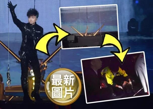 皆因,据悉在事发时候,古巨基突然叉错脚踩空堕洞之际,还发出了很大的惊叫声音,然后就忽然间消失在舞台上。这不仅让台下的圈中好友被吓到,现场也有不少观众歌迷也惊呆一时反应不过来。