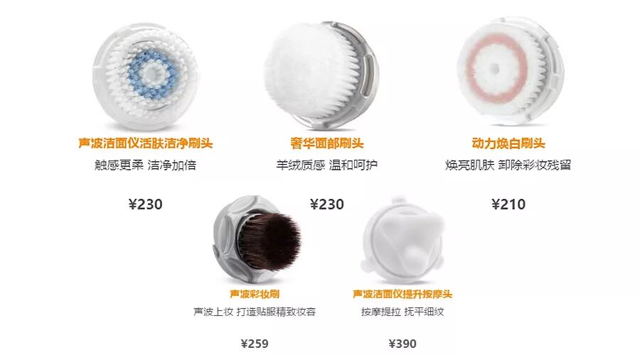 LUNA:洁面、舒缓按摩、可根据不同肤质选择不同刷头;