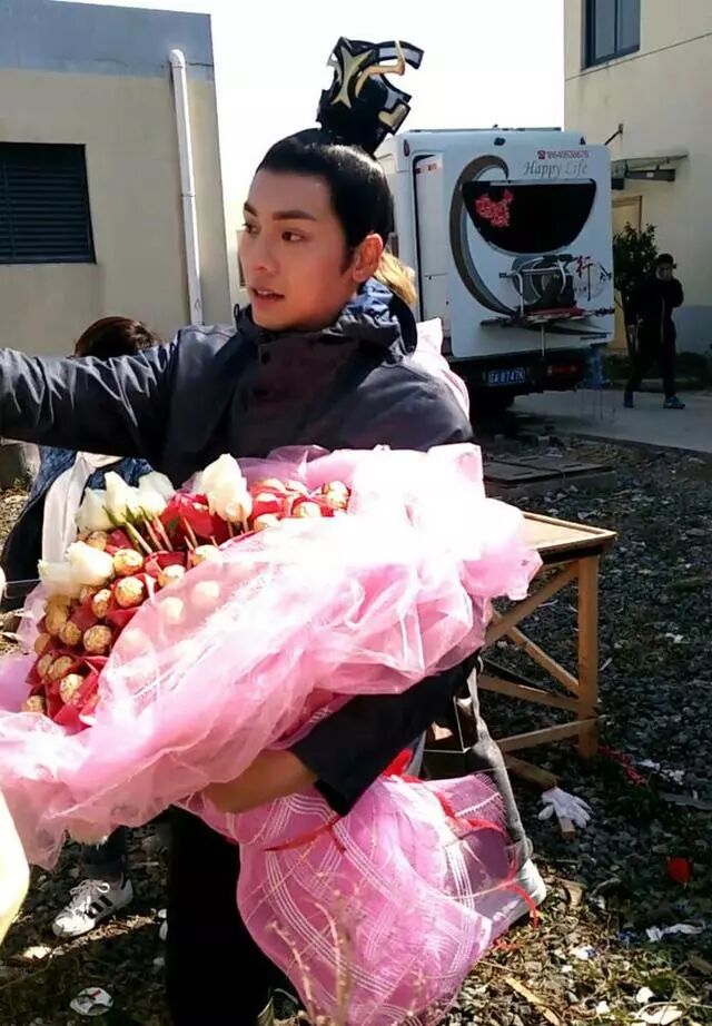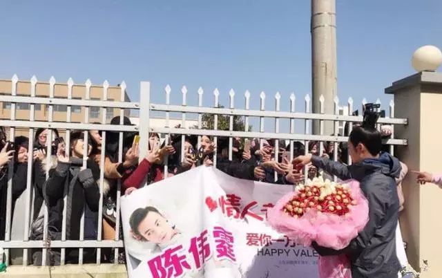 今年情人节去片场探班的宝宝是不是收到老公陈伟霆送的玫瑰花和巧克力了呢,当时在场的人一定超温暖吧,和小哥哥一起过。