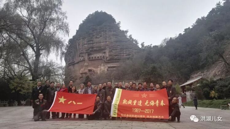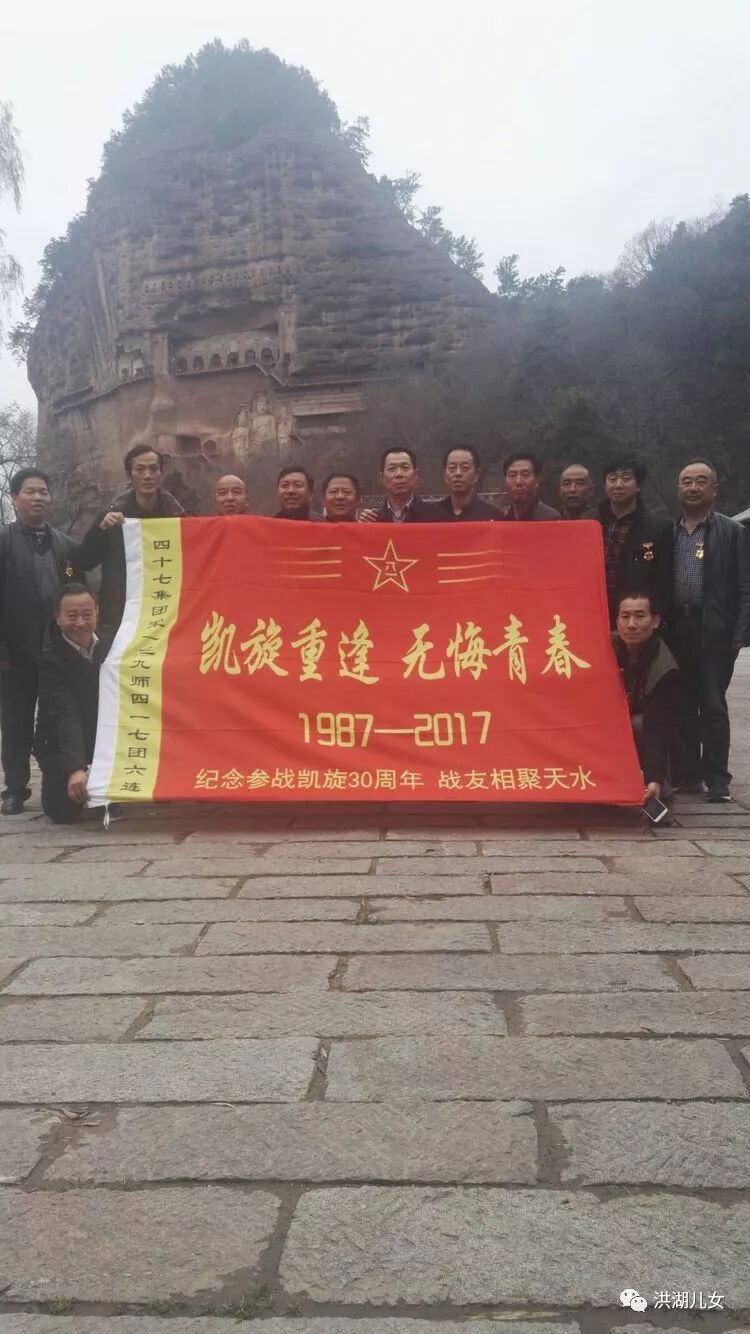 感谢田奋来、王志恒、曾贤德、史正德、张小勇等战友,精心组织了这次聚会,给我们一个梦想成真的机会,韩俊战友站在麦积山石窟顶峰,面对群山不由自主,发自内心高声呼喊:“我来聚会了!我见到我的生死战友了!”就是我们这种心生和愿望的最好表达。感谢营副教导员千里迢迢从山东赶来参加这次由当年的战士组织的聚会。