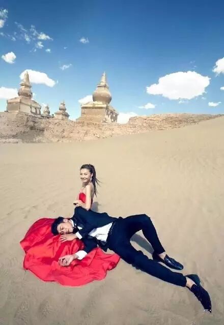 何润东的 婚纱照,以沙漠为背景,好豪迈哦