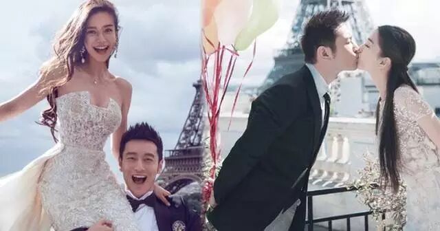 黄晓明angelababy的婚纱照,以埃菲尔铁塔为背景,搞怪又可爱呢