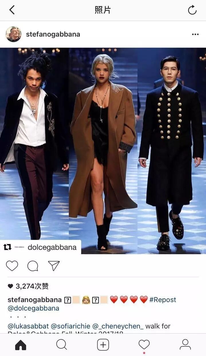 在男装周也不忘搞笑逗比,用DolceGabbana官博发自拍,自称杜嘉班纳.陈@陈学冬。