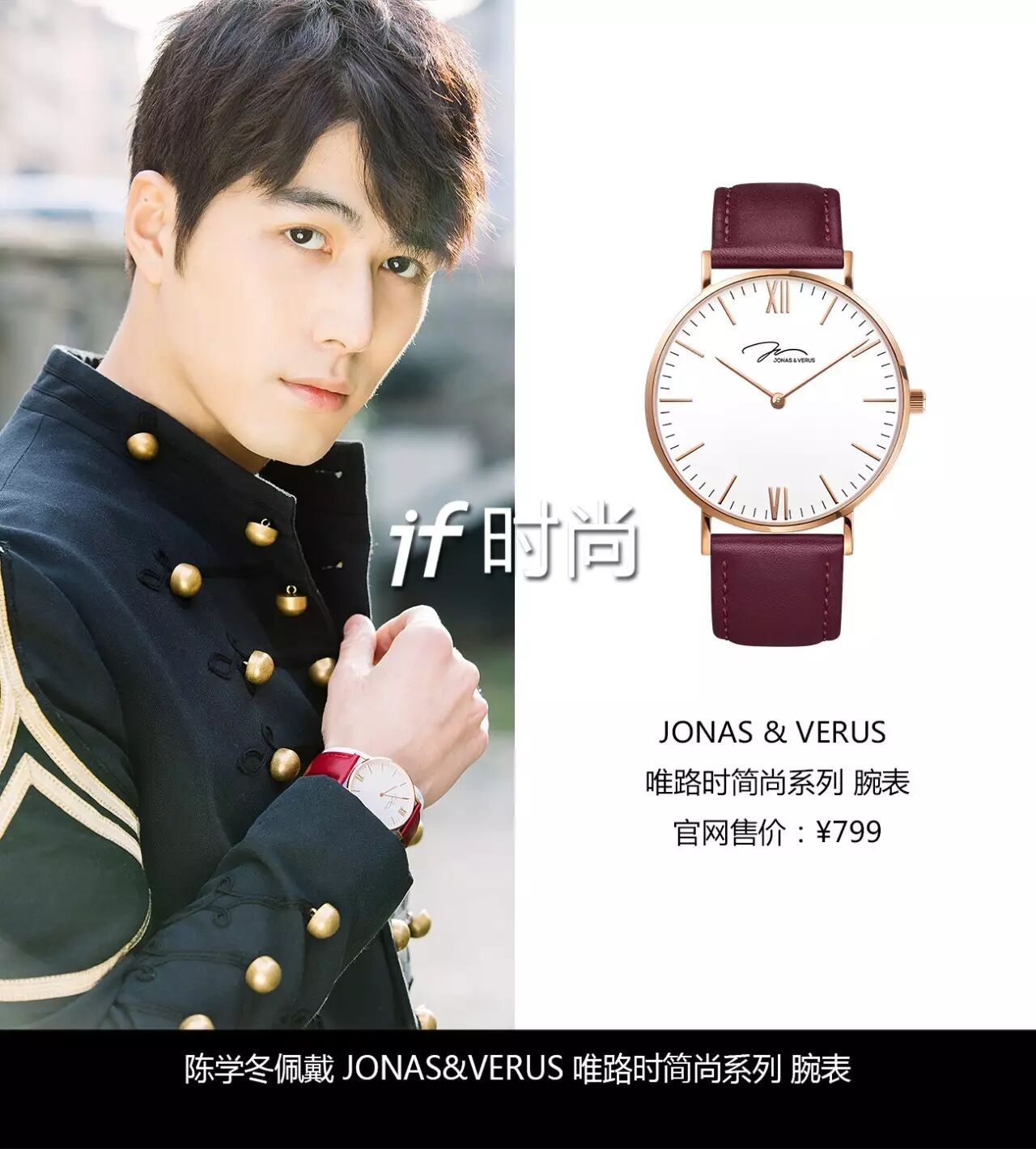 配上JONAS & VERUS 唯路时简尚系列腕表,红色表带为整套黑色军装造型增添了跳跃的活力。