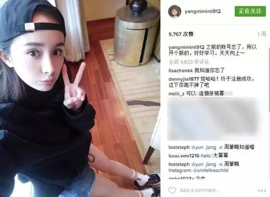 杨幂去年重新开ins,第一个关注的就是陈学冬。