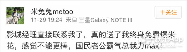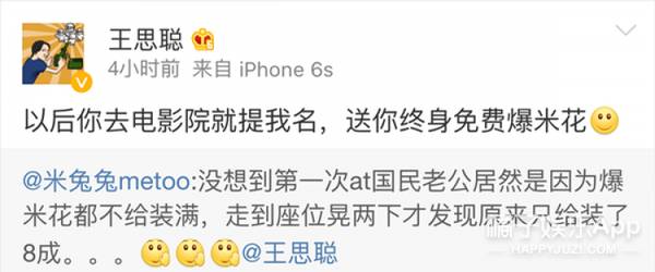 随便艾特了一下王思聪竟然获得了终身免费爆米花,这运气好的也真是没sei了。