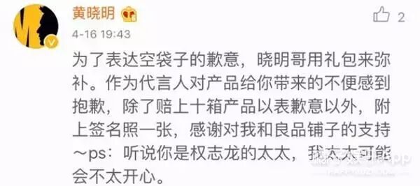 于是这位同学就在微博了艾特了黄晓明,表达了自己的委屈。