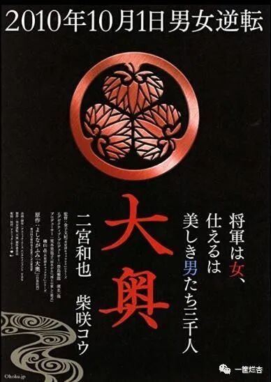 为大家送上一部2010年10月1日在日本上映,改编自漫画家吉永史的人气漫画,金子文纪执导,二宫和也、柴崎幸主演的时代剧《大奥》。