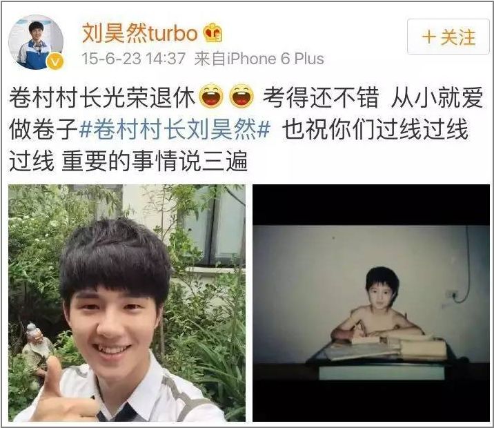 考完后他在微博说自己是“卷村村长”,从小就爱做卷子...想要这样省心的儿子...