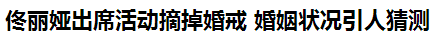 之后,丫丫出席活动都是精神饱满,大方得体的,但对婚姻状况都是绝口不提的。最重要的是,大家发现,丫丫手上的结婚戒指已经照下来了。