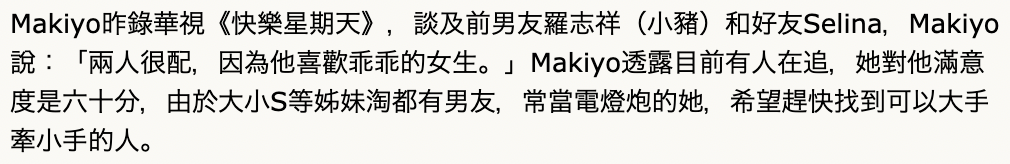 也是差不多同时期,Makiyo跟罗志祥因为一同主持《TV三贱客》走得很近,传出绯闻。