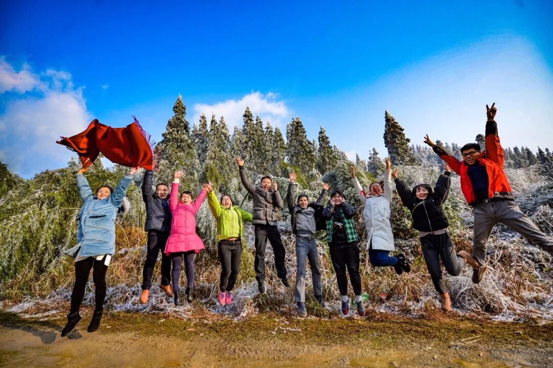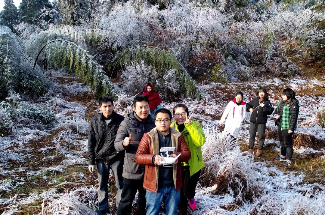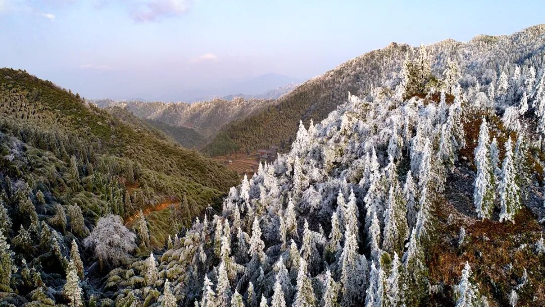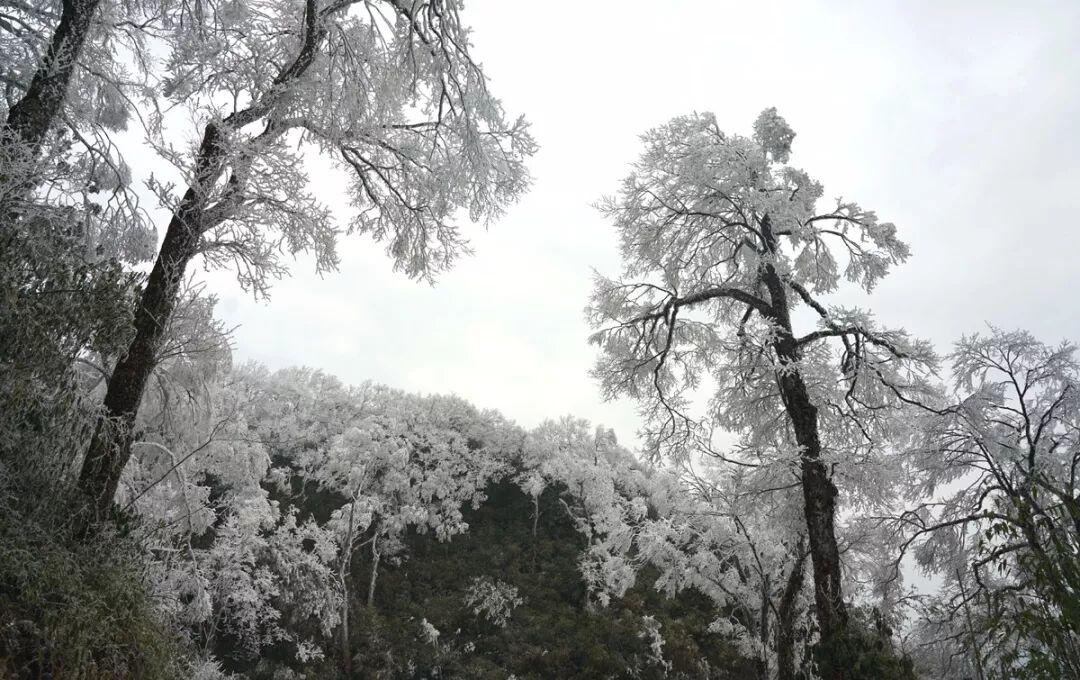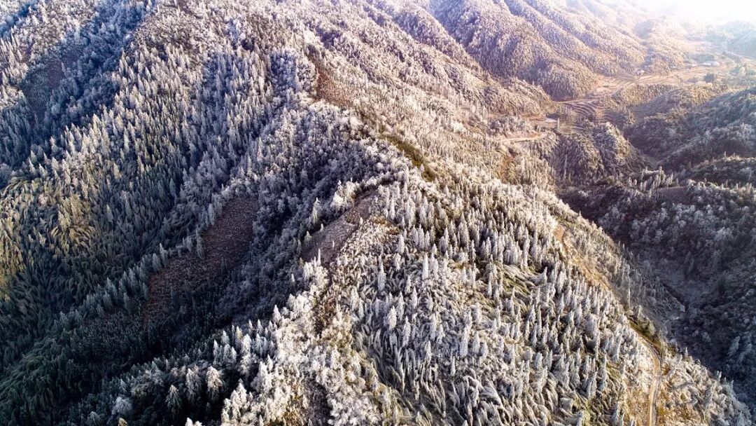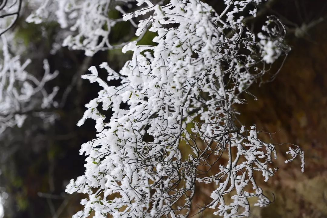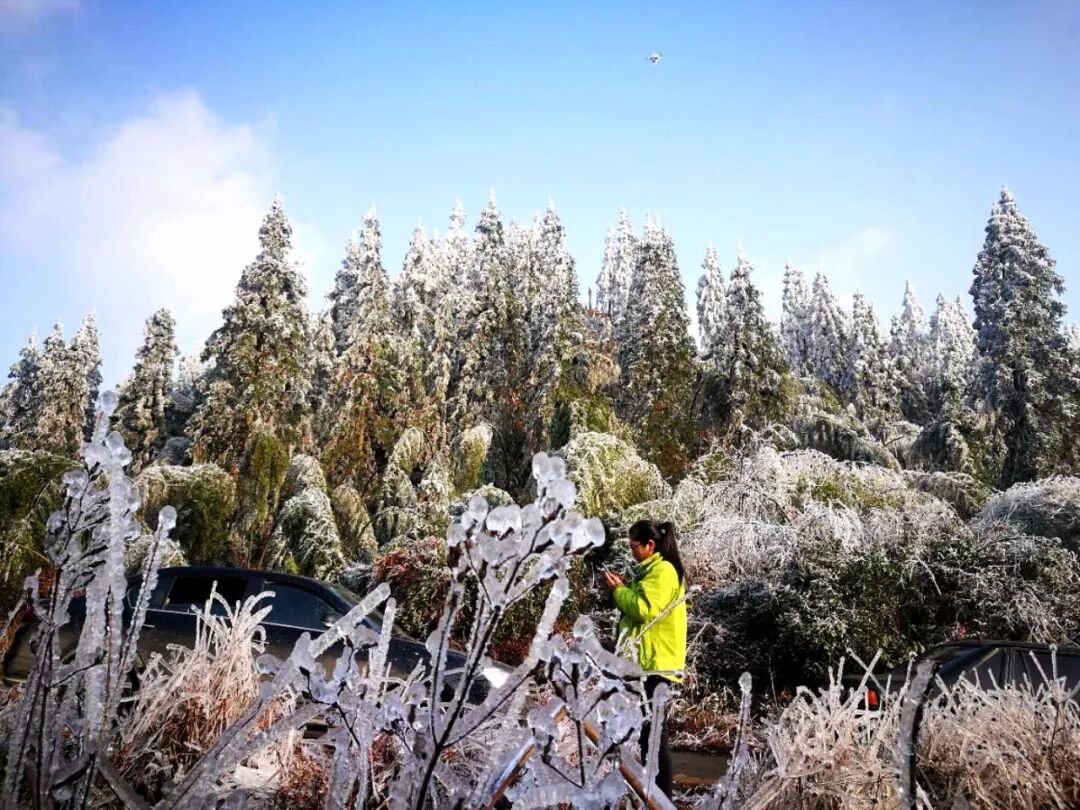 连日来,受强冷空气影响,广西龙胜各族自治县最低气温降到零度以下,加上连日来雨雾交加,气温持续低迷,满山的树木都挂满了雾凇。在海拔600米以上的南山、彭祖坪、西江坪、伟江花界、乐江地灵、平等上社、江底建新、龙脊平安等高寒山区出现“千崖冰玉里,万峰水晶中”的壮美雾凇景象,这是龙胜县入冬以来的第一场较大规模的雾凇冰挂景观。满山遍野的雾凇、冰挂如“冰雪奇缘”般的童话世界,引来不少观赏者。放眼望去,一片雪白的世界,树木和草丛,或被雾凇装扮得银装素裹,或被冰挂装扮得晶莹剔透,美不胜收。山上的游客或互相拍照留影,或漫步雪白的世界,享受着南方难得的冬日美景。