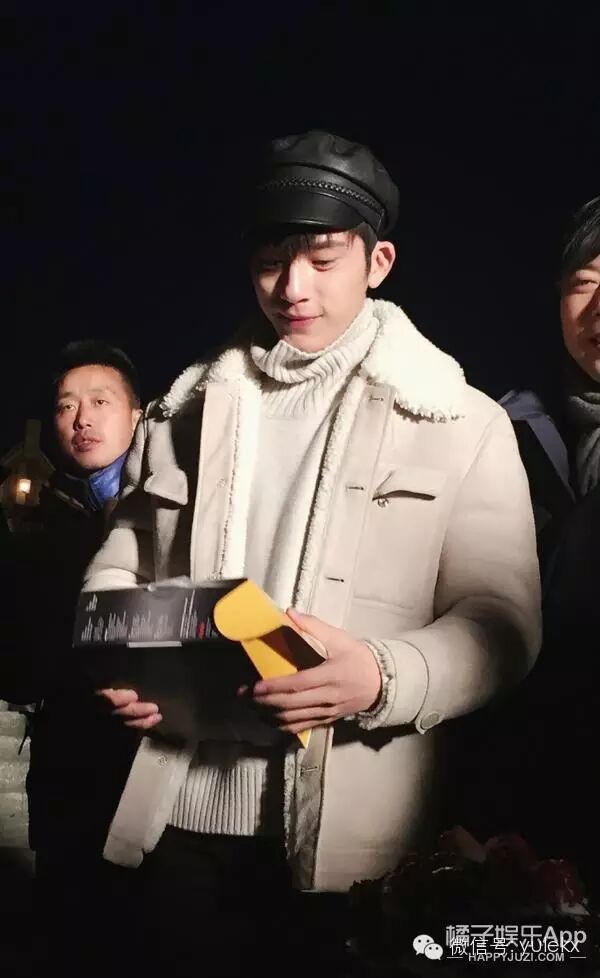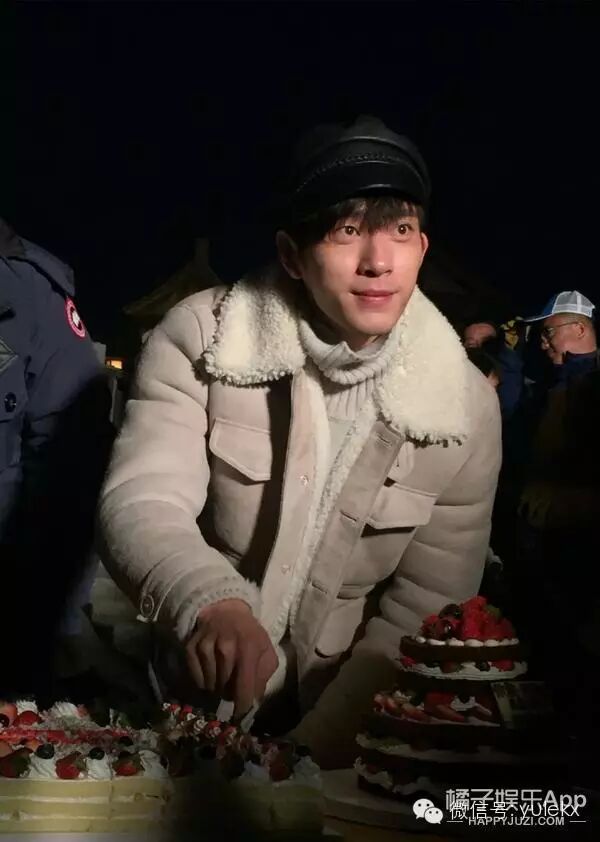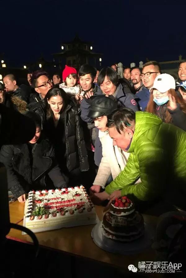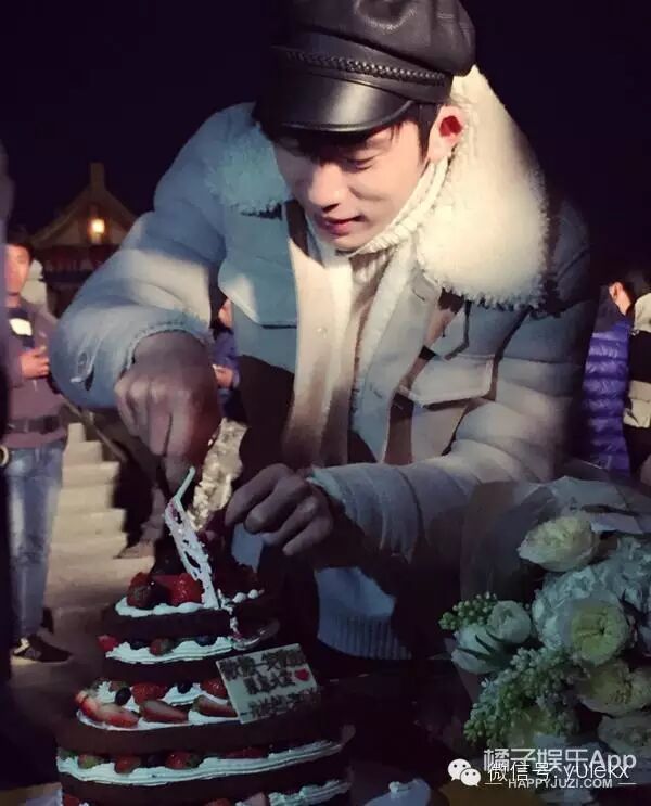 好咧~宝宝要给大家切蛋糕了,切之前先抬头亮个相。井宝,拍夜戏很辛苦吧,你的黑眼圈似乎很重啊。