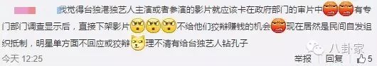 其实我本人并不把台独这件事本身看得多严重。平心静气地想一下,正如我们在大陆接受根正苗红的红色教育,对岸的民众也系接受政治观点迥然不同的教育长大,在这种背景下,哪一方都不可能靠喊口号说服对方,能让双方达成一致的只有共同的利益。所以一个台湾出生的艺人有着不大能被大陆民众接受的政治观点,这件事本身并没有什么不对,但当这样的艺人来大陆赚钱时,事情的性质就发生了转变,这已经不是政治,而是生意。