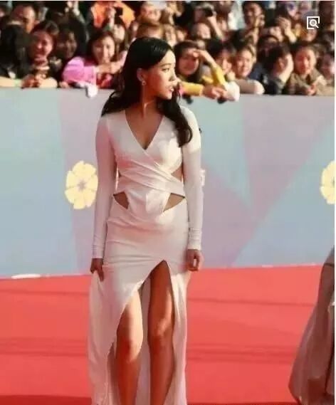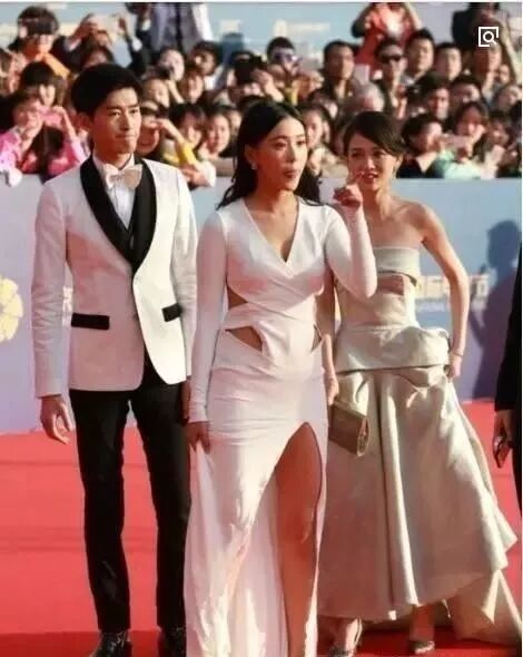 该女星在和陈乔恩张翰一同走红毯的时候,一身白色的镂空露腰白色礼服,开叉也很是大胆,让众人看了都很是尴尬。