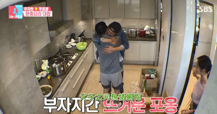 爸爸在厨房,也不能忘记,特意跑进来给一个大大的涌抱。