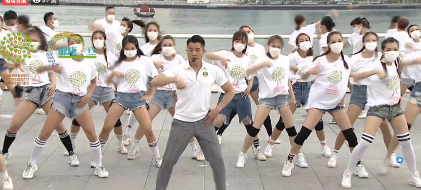 当天下午,在高温下,郭富城准时5点在海港城露天场地开唱,带着约80位舞蹈演员又唱又跳一个小时,以音乐和舞技向全球观众抗疫打气。