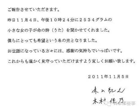 随后在今年11月1日,太一于在自己担任主持的TBS节目中宣布了妻子顺利产女的消息,他表示:“我昨天正式当爸爸了,是个3176g的健康女婴,天蝎座。”