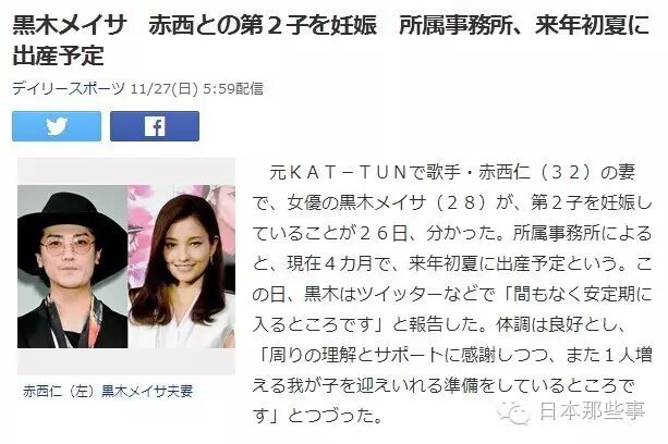 事业方面,赤西仁也成立了自己的公司,日本国内事业和海外事业都发展得顺风顺水。黑木明纱婚后也出演了《恶货》《设计婴儿》《世界奇妙物语16秋特别篇》《拜启,民宿大人》等一系列日剧。