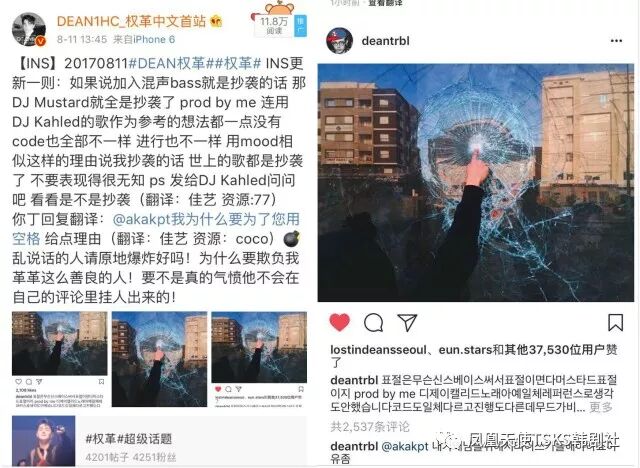 粉丝们得体的行为,在很大程度上可能也来自于他们所喜爱的音乐人本身的态度!说起来DEAN也不是第一次遇到这种事情了,之前被网络上传言说在<Show Me The Money 6>中他制作的<哪里>这首歌抄袭DJ Kahled的<im the one>,DEAN立刻就在自己的INS上给出了回应——