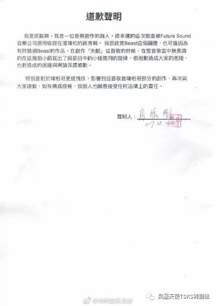 事件发酵后,<失眠>的作者房振刚通过所属公司华纳音乐发出道歉声明,承诺尽快下架相关歌曲。龙俊亨也针对此事做出了回应。
