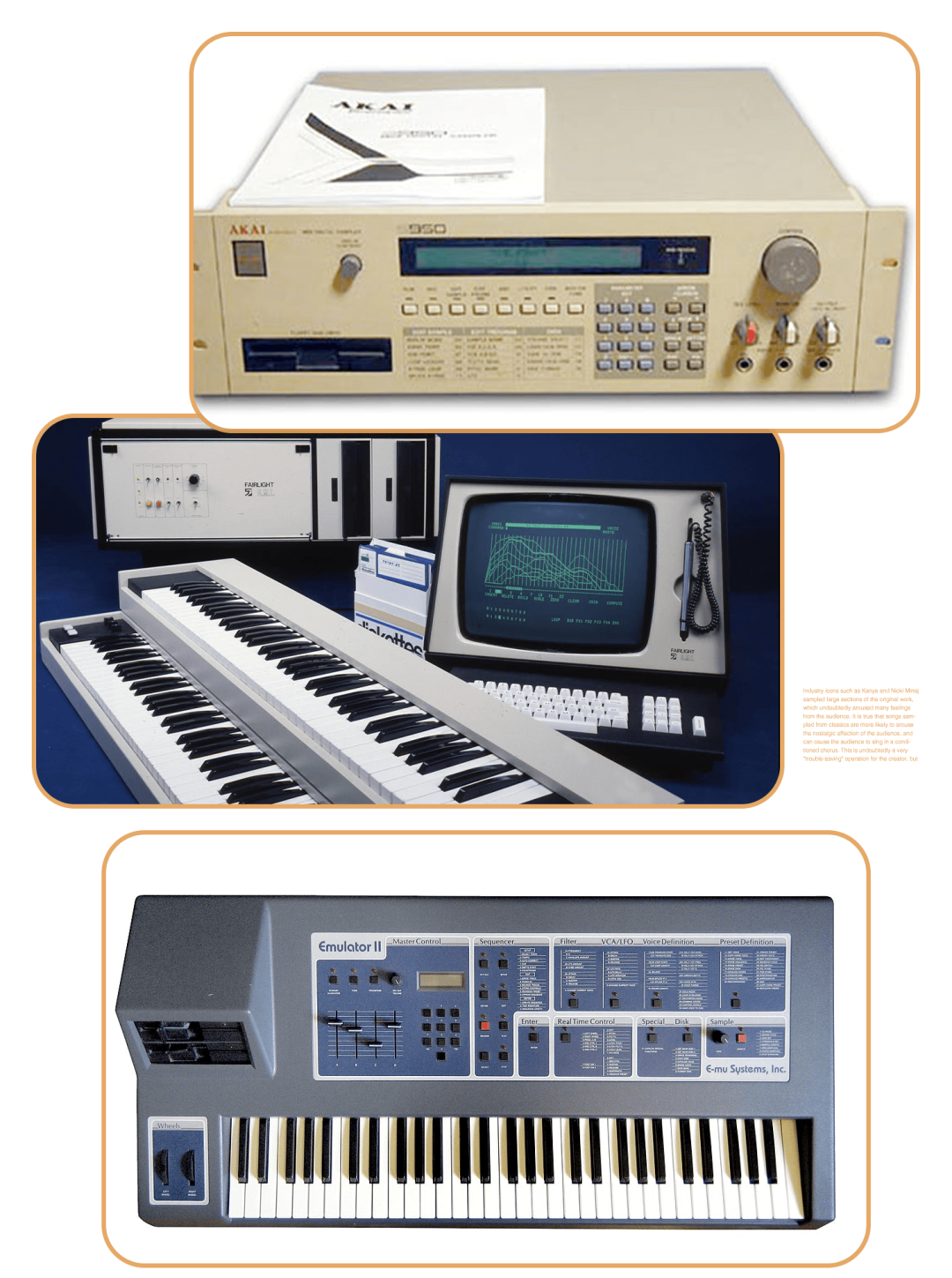 随着嘻哈文化的大放异彩,音乐制作人和歌手将Loop(循环播放)和采样融入当时尚且属于新兴事物的Hiphop当中。可以说,采样技术的出现以点带面的改变了音乐创作的样貌,采样制作也在很大程度上颠覆了传统的音乐制作方式,当时Akai S950、Fairlight CMI 和 E-mu Emulator这些传统的采样器为诸多艺术家提供了采样的灵感。