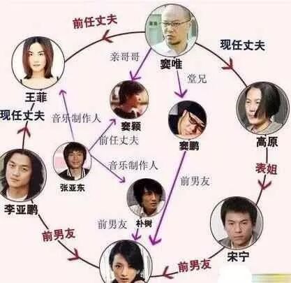 李亚鹏是窦靖童的前继父,周迅是李亚鹏的前前前女友。周迅之前,李亚鹏的女友是瞿颖!瞿颖后来又成了张亚东的女友,而张亚东是王菲的音乐制作人。张亚东的前妻是窦靖童爸爸都窦唯的妹妹窦颖,即窦靖童的姑姑。窦唯的堂弟窦鹏,又曾经是周迅的男友...(小桃都快把自己绕晕了,理了很多遍,才把她们的关系理清~)