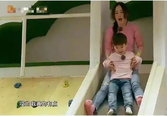 节目中,霍思燕和嗯哼一起玩滑梯,她表示这个滑梯太抖,自己心里有点害怕。