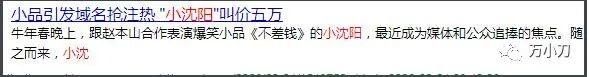 虽然最后没上成春晚,但是经过观众与媒体的舆论发酵,小沈阳人气倍涨,演出费从过去的500翻了40倍,直接涨到了2万元!